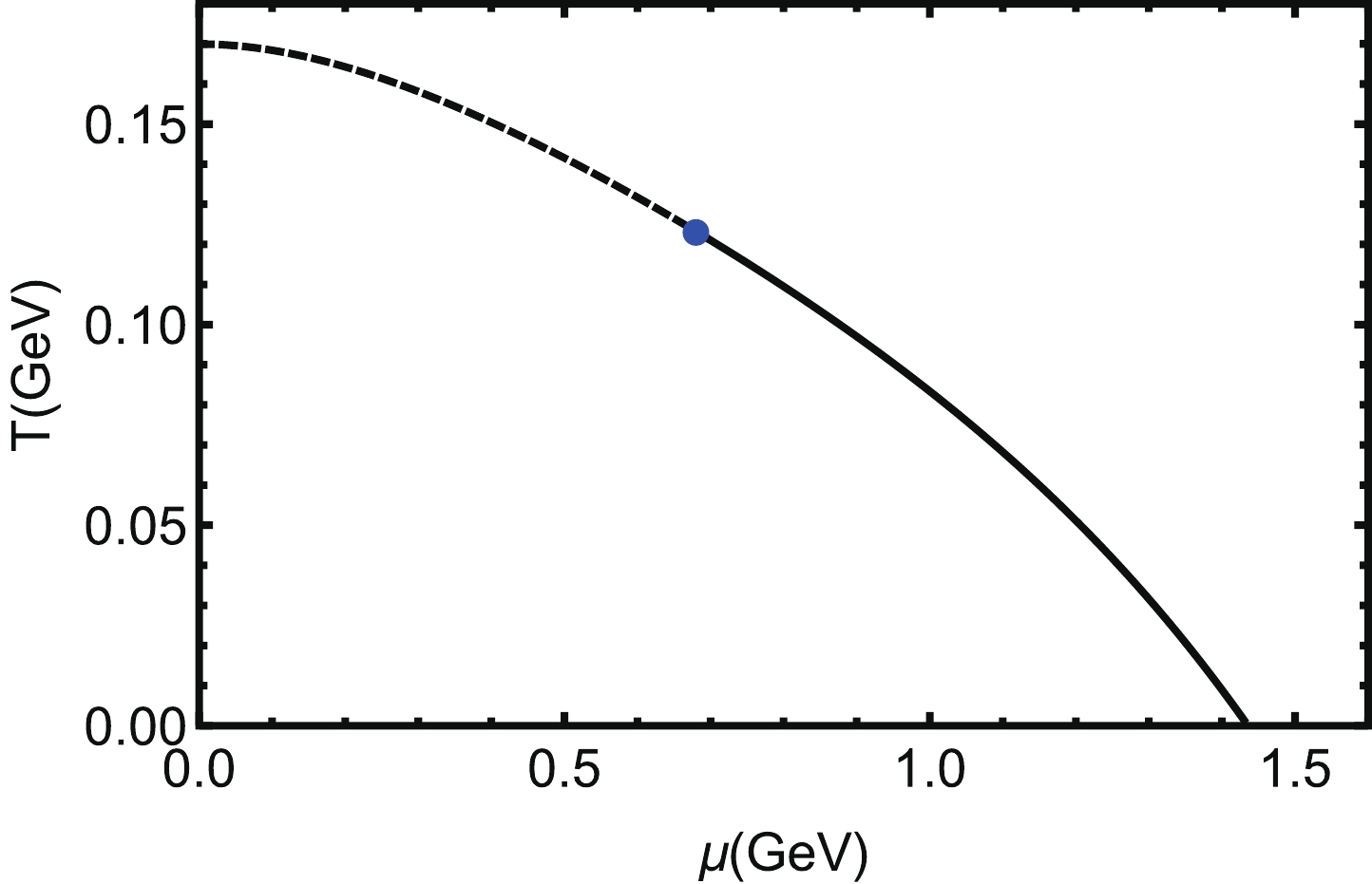 We choose $ \epsilon = 0.01\; {\rm{GeV}}^{-1} $ in our calculation, and therefore, $ \epsilon_0 $ is not a constant but a function of temperature T and the quark chemical potential $ \mu $ , e.g., $ \epsilon_0 = \epsilon_0(T, \mu) $ as shown in Fig. 5.