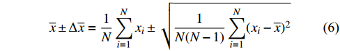 $ \overline{x} \pm \Delta\overline{x} = \frac{1}{N}\sum\limits_{i = 1}^N x_{i} \pm \sqrt { \frac{1}{N(N-1)}\sum\limits_{i = 1}^N (x_{i}-\overline{x})^2} $