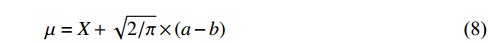 $ \mu = X + \sqrt{2/\pi}\times(a-b) $