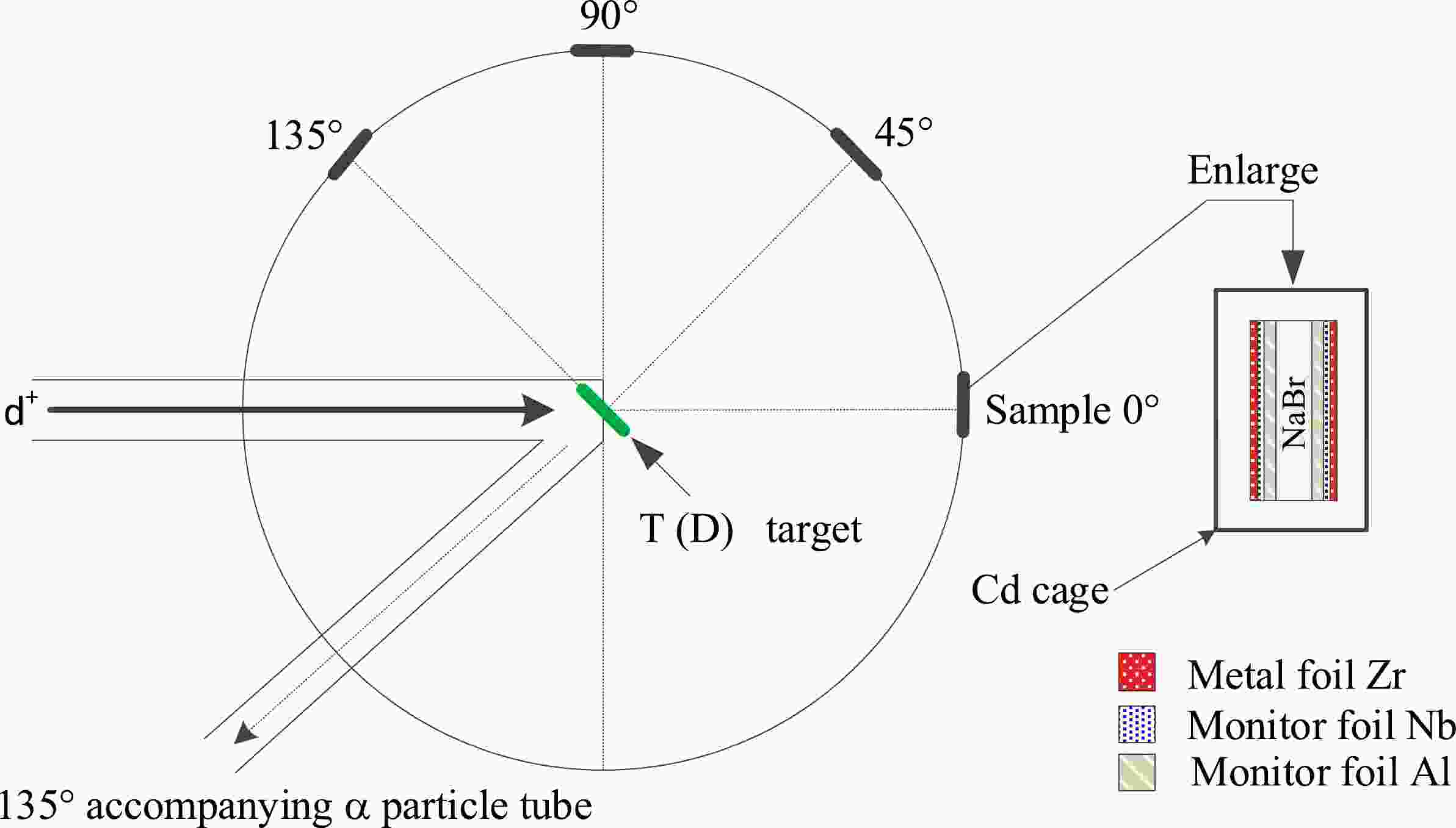 At the China Academy of Engineering Physics (CAEP), the specimens were exposed to radiation using the K-400 Neutron Generator for approximately two hours at a neutron yield of (4~5)×1010 n/s in the 4π solid angles. The thickness of the tritium-titanium (T-Ti) target was 2.65 mg/cm2. The neutrons were generated via the d+T→ 4He+n+17.6 MeV reaction while employing a beam current of 240 μA and an effective deuteron beam energy of 134 keV. The sample groups were positioned at 0º (No. 1), 45º (No. 4), 90º (No. 2), and 135º (No. 3) with respect to the direction of the deuteron beam, and the distance to the T-Ti target was approximately 50 mm (see Fig. 1).