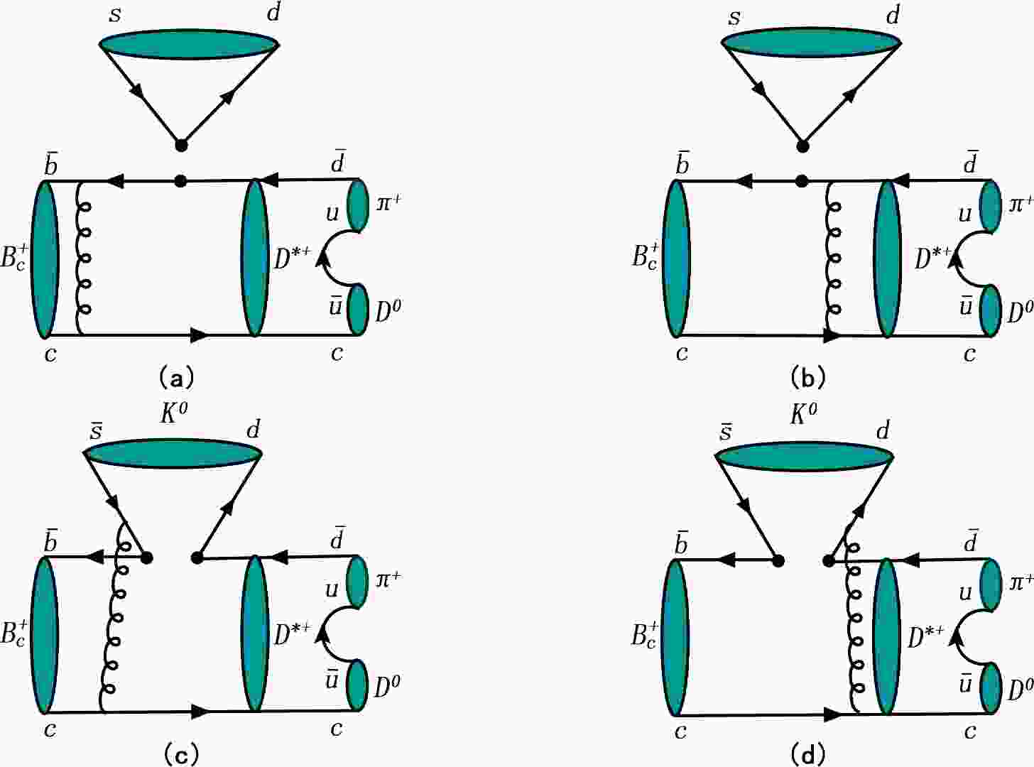 $ B_c^+\to D^{*+}h\to D^0\pi^+ h $ are shown in Figs. 1 and 2, where we take the decay$ B_c^+\to D^{*+}K^{0} \to D^{0}\pi^{+} K^{0} $ as an example. The analysis formulas for the decay amplitudes of the different Feynman diagrams are given in the appendix.