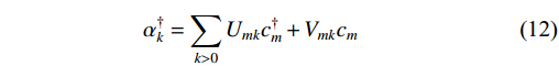 $ g_{a \gamma} $ denotes the coupling coefficient between the ALP and photons, a denotes the ALP field, F denotes the electromagnetic field strength tensor,$ \tilde{F} $ denotes its dual tensor,$ \vec{E} $ denotes the photon electric field, and$ \vec{B} $ denotes the magnetic field. The propagation equation for a monochromatic ALP/photon beam can be written as [9]$ \left({\rm i} \frac{\rm{d}}{{\rm{d}} z} + E + {\cal{M}}^{\prime} \right) \Psi(z) = 0, $