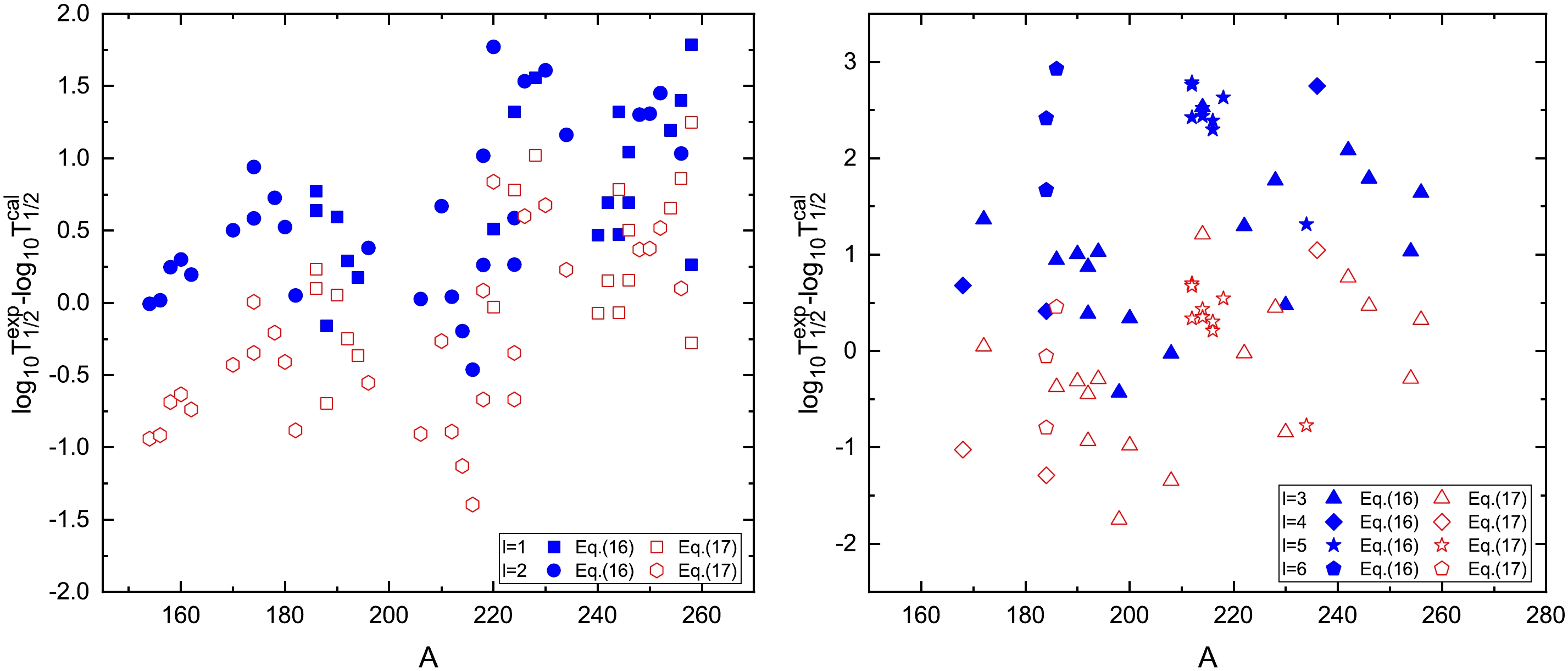 l $ \log_{10}{T}_{1/2}^{\rm{\,exp}} $