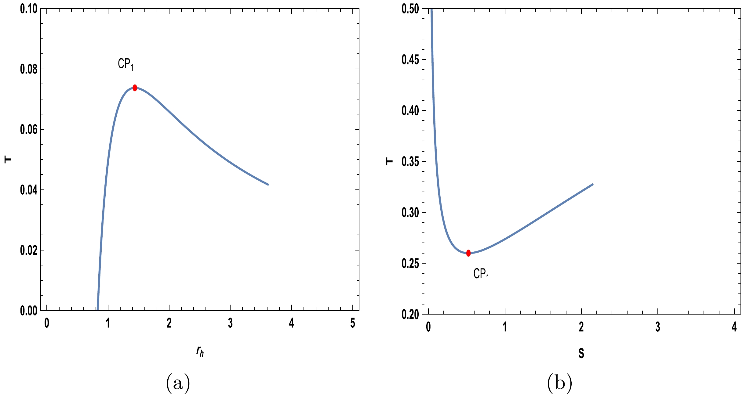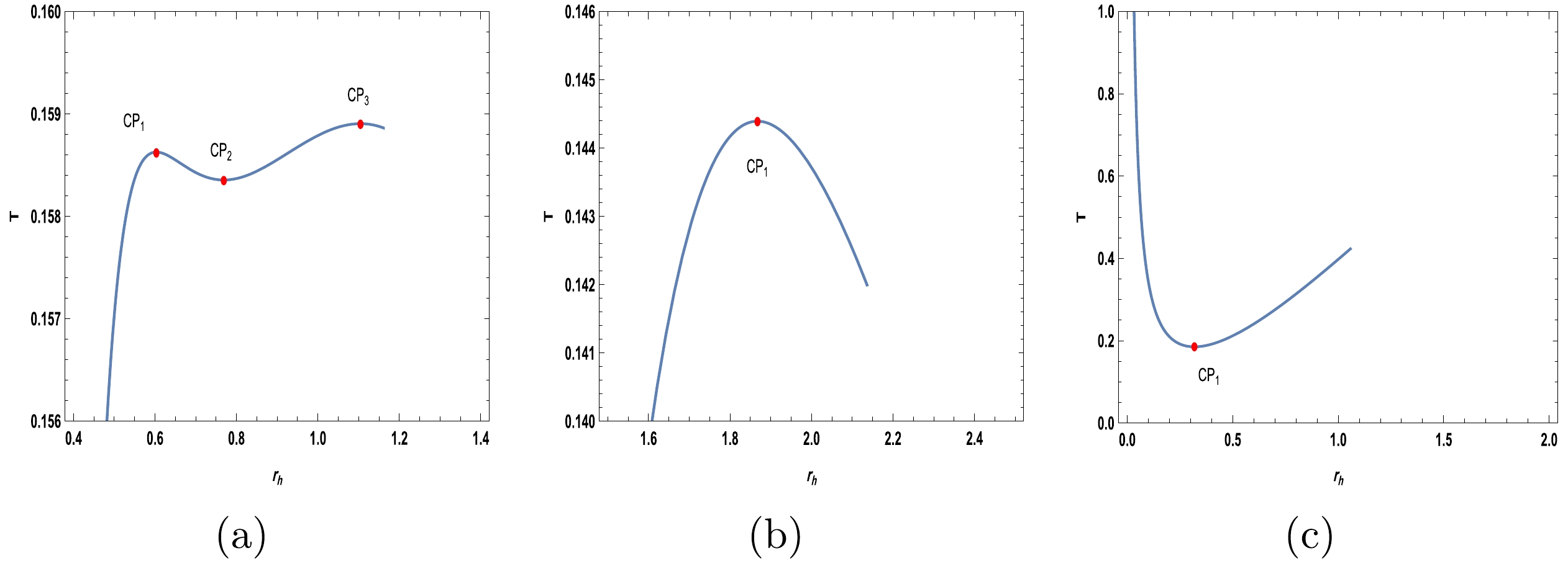 $ x^{i} $ ), which vary depending on the gravity theory and black hole solution. These properties are considered as variables in extended thermodynamic systems. The temperature function for these systems is given by [16]$ \begin{align} T=T(S, P, x^{i}) \quad {\rm or} \quad T=T(r_h, P, x^{i}). \end{align} $